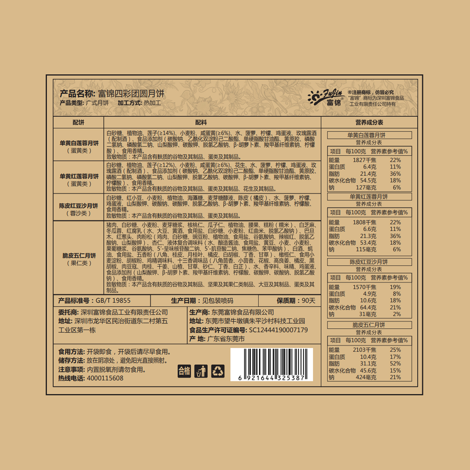 富锦四彩月饼710克